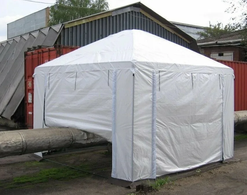 Специальная палатка, предназначенная для проведения сварочных работ на трубах. Подходит для использования в полевых условиях и на строительных площадках.